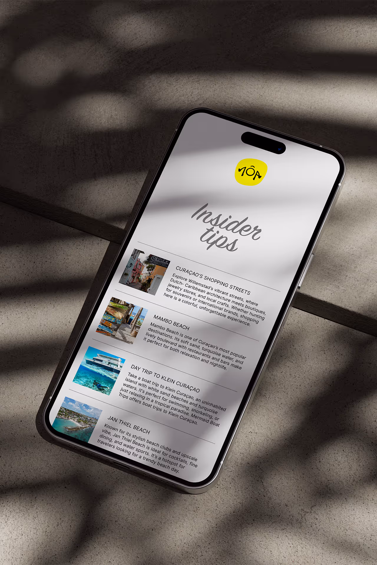 With our Great Stay App, you have all the information for your Curaçao holiday right at your fingertips. Get handy details about your trip, your luxury apartment, and discover our insider tips and activities to make the most of your stay on this beautiful island.